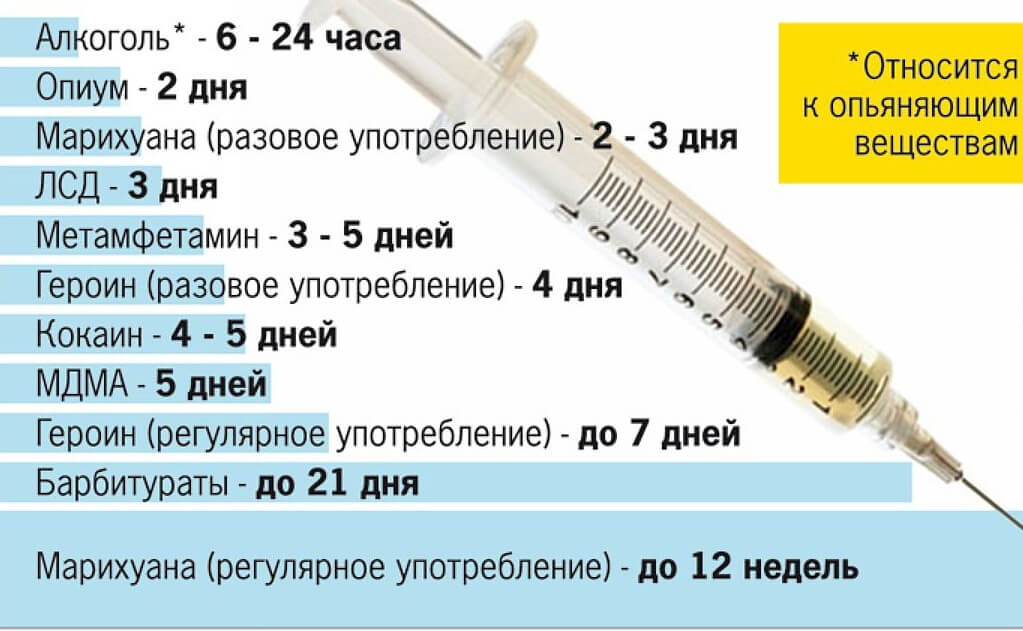 Медициной установлены общие сроки, когда наркотические средства выходят из органических тканей. Точное количество суток для каждого отдельного человека будет индивидуальным, т.к. зависит от факторов: